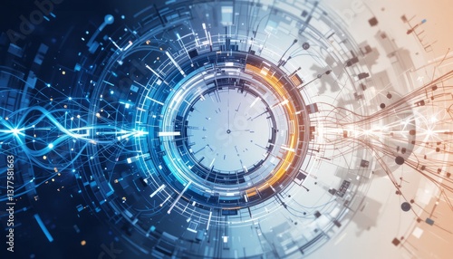 Obraz premium Abstract Digital Technology Network Connection Background Featuring Blue Orange
