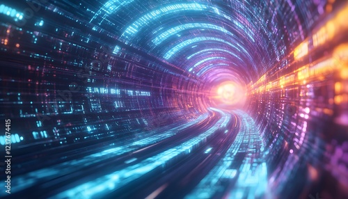 © Berkah, Fototapeta premium Abstract Digital Tunnel Data Stream Visualization