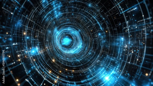 Fototapeta premium Abstract Digital Tunnel: Glowing Blue and Orange Circles