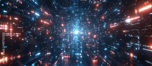 Fototapeta premium Abstract digital tunnel, glowing code, futuristic background. Use Technology, digital art, sci-fi