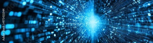 Fototapeta premium Abstract Digital Tunnel with Binary Code and Glowing Lines