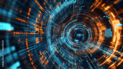 © Anak, Fototapeta premium Abstract Digital Tunnel with Blue and Orange Lights
