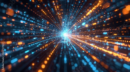 Naklejka premium Abstract Digital Tunnel with Blue and Orange Lights Creating a Dynamic and...