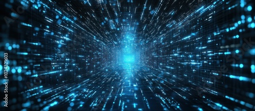 Naklejka premium Abstract digital tunnel with glowing blue lines and particles.