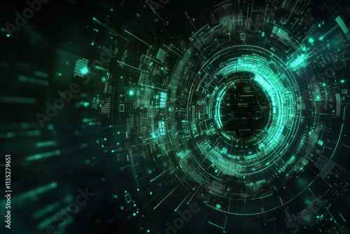 Fototapeta premium Abstract digital tunnel with glowing green lines and data streams.