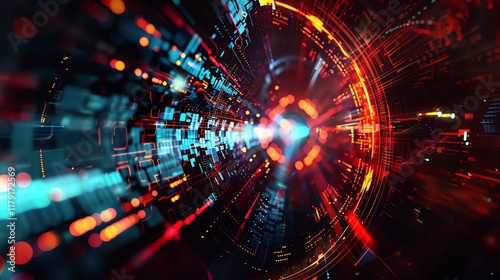 © Galib, Fototapeta premium Abstract digital tunnel with glowing lights.