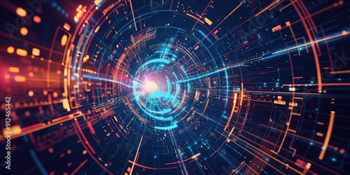 Obraz premium Abstract digital tunnel with glowing lines.