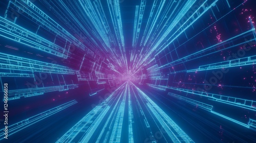 Obraz premium Abstract digital tunnel with glowing patterns.