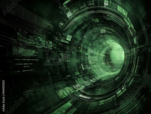 Obraz premium Abstract Digital Tunnel with Green Code