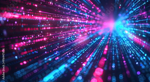 © diwa, Fototapeta premium Abstract Digital Tunnel with Neon Lights