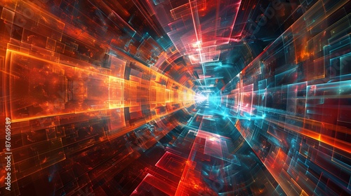 © OlScher, Fototapeta premium Abstract Digital Tunnel With Red And Blue Lights
