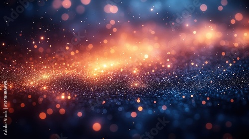 © RizalAziz, Fototapeta premium Abstract Digital Universe With Orange and Blue Particles in Dark Background