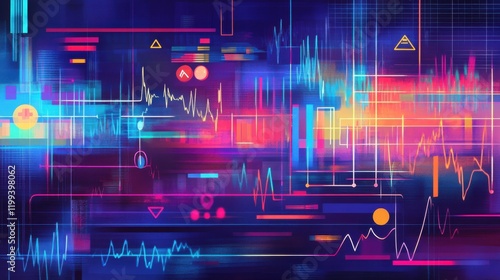 Obraz premium Abstract digital visualization of colorful data streams and graphs...