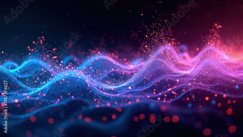 © Designbd25, Fototapeta premium Abstract digital visualization of flowing energy particles in vibrant blue and purple colors