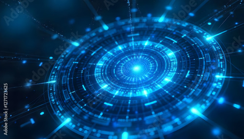 © MdSajal, Obraz premium Abstract digital vortex, blue technology background