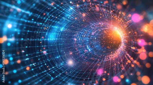 Obraz premium Abstract digital vortex with glowing particles and lines representing...