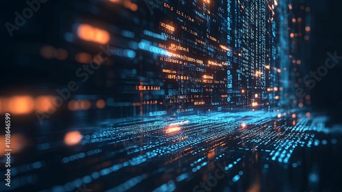 © kayudamar, Fototapeta premium Abstract Digital Wall of Illuminated Binary Code