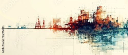 © Dekastro, Obraz premium abstract digital wallpaper with architecture and engineering wire frame graphic elements on a white background
