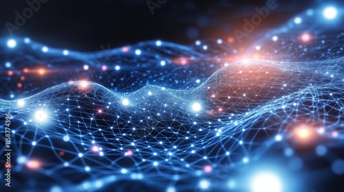 © 海翰 章, Obraz premium Abstract Digital Wave Background with Blue Glowing Particles and Data Flow for Technology, AI, and Network Visualization Concepts