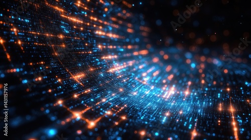 © Zidan, Obraz premium Abstract Digital Wave: Blue and Orange Glowing Network