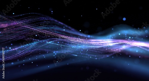 © Yudi, Obraz premium Abstract digital wave design with glowing particles (2)