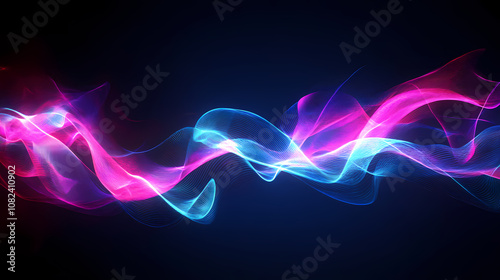 © Thiago, Naklejka premium Abstract digital wave in neon blue and pink. Futurity. Illustration