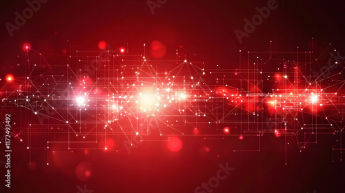 © Mahmud, Fototapeta premium Abstract Digital Wave of Glowing Points in Red and Blue