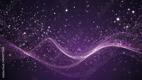 Fototapeta premium Abstract digital wave of glowing purple particles and shining stars on dark...