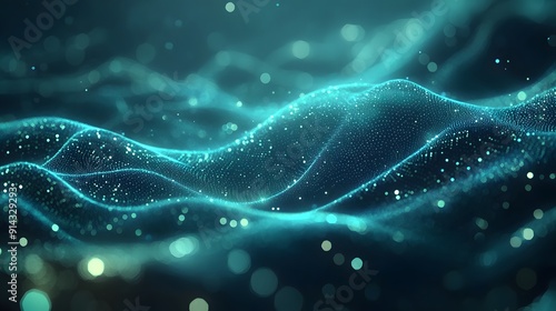 Fototapeta premium Abstract digital wave of particles on dark background, showcasing dynamic...