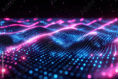 Fototapeta premium Abstract digital wave particles flowing in cyberspace, ideal for tech backgrounds