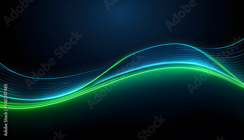 © Janos, Naklejka premium Abstract digital wave with blue and green light effects on a dark background.