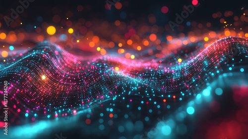 Fototapeta premium Abstract Digital Wave with Blue and Pink Lights