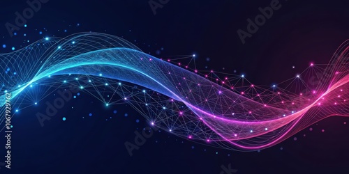 Fototapeta premium Abstract digital wave with glowing lines and nodes, creating a vibrant and...