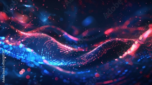 © abdul, Obraz premium Abstract Digital Wave with Glowing Particles