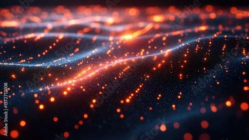 © P, Fototapeta premium Abstract Digital Wave with Glowing Particles abstract digital wave particles glowing data technology