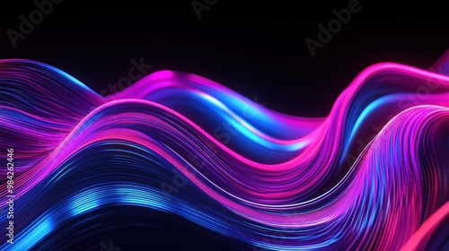 © B 7 YOU, Naklejka premium Abstract digital wave with pink and blue neon lights on black background.
