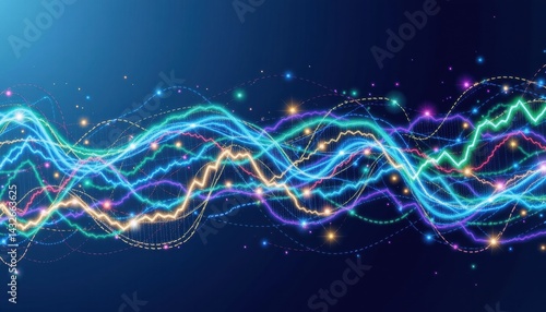 © Nattapol, Fototapeta premium Abstract digital wave with vibrant colors and lights.