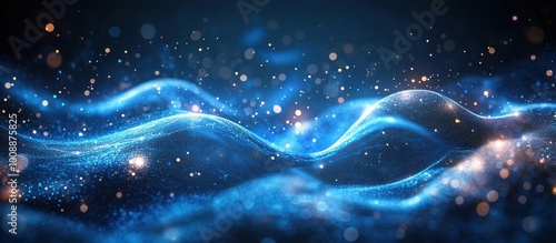 Fototapeta premium Abstract Digital Waveform with Glowing Particles and Dynamic Blue Light Effects in a Futuristic Technology Background