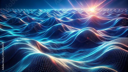 Obraz premium Abstract digital waves background with a glowing grid pattern, representing...