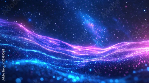 Fototapeta premium Abstract digital waves, glowing particles, cosmic background