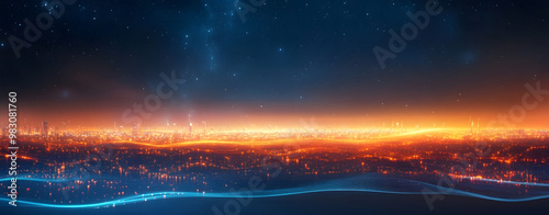 Fototapeta premium Abstract Digital Waves with Glowing Orange and Blue Lights - Futuristic Data Flow