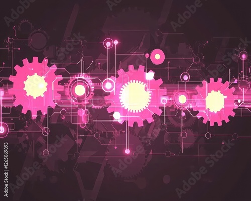 Fototapeta premium Abstract Digital Workflow Featuring Interconnected Gears and Glowing Circuit Design