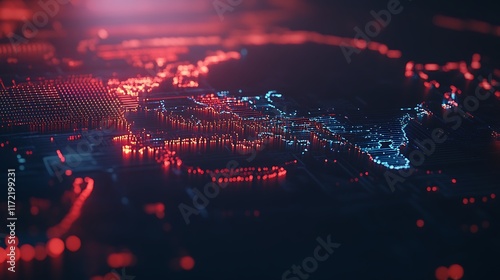 © oris, Fototapeta premium Abstract Digital World Map Red And Blue Lights