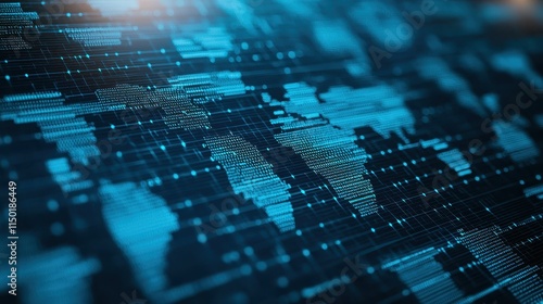 Obraz premium Abstract digital world map with data patterns in blue tones.