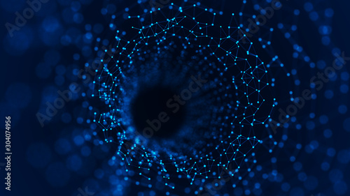 © Olga, Obraz premium Abstract digital wormhole. Sci-fi tunnel or portal. Digital binary data tunnel. Futuristic space travel concept. Wireframe 3d surface. 3d rendering.