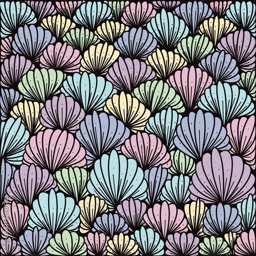 Obraz premium Abstract, Doodle, abstract lines with no fixed form combine to create images, complex patterns, shell motifs, carpet designs, print patterns, wallpaper, fabric, covers.