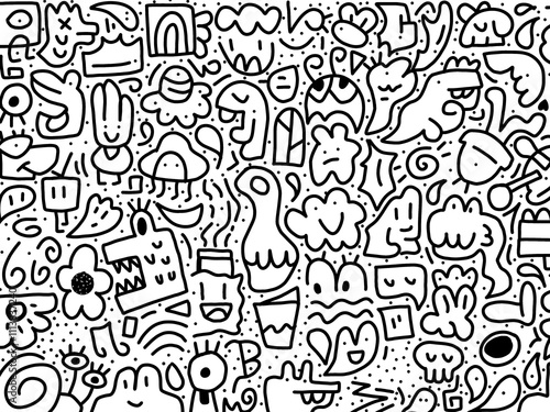 Obraz premium abstract doodle art pattern, black and white doodle wallpaper vector
