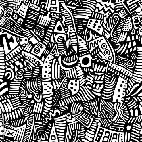 Fototapeta premium Abstract doodle black and white seamless pattern.