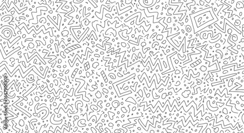 © vectorT, Fototapeta premium Abstract Doodle Pattern A Black and White Freehand Pen Art With Random Zigzags, Dots, and Looping Curves