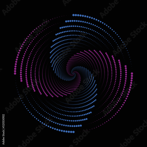 Fototapeta premium Abstract dots moving in blue and pink circles technology on black background.